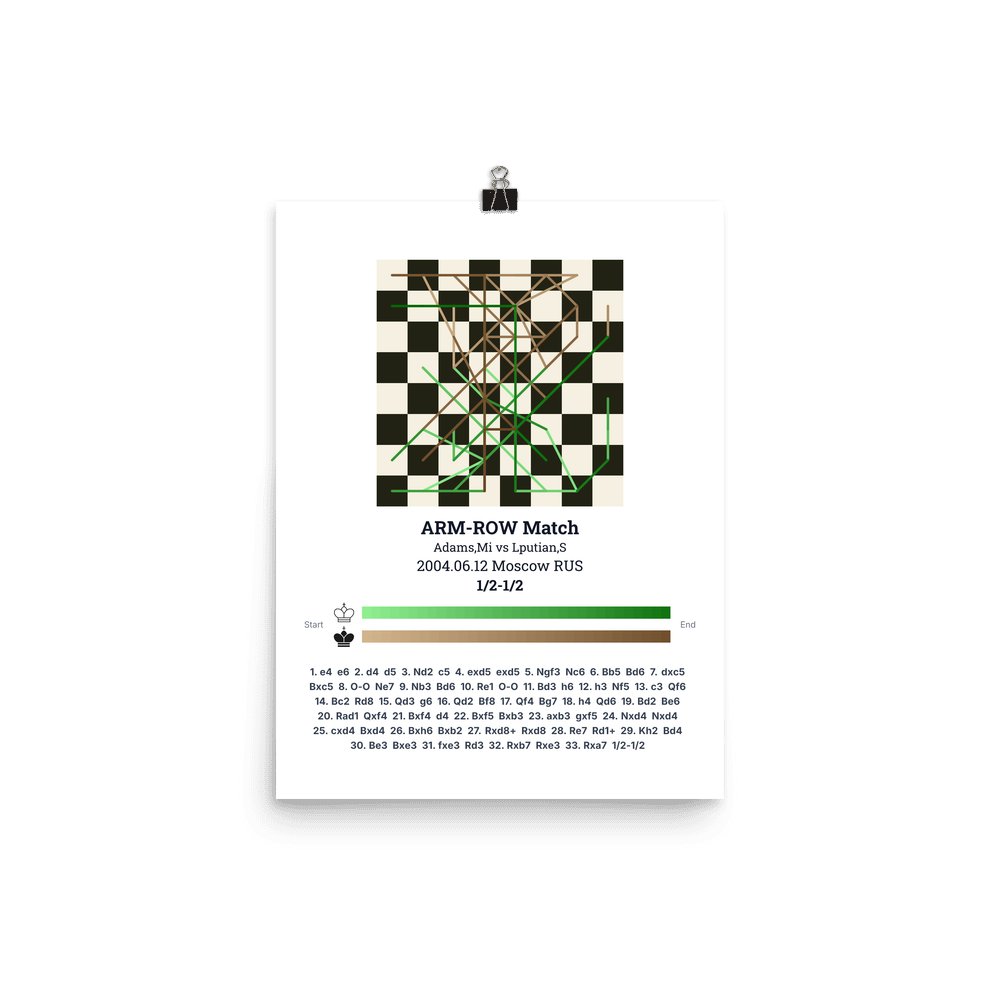 Museum-quality poster on thick, durable matte paper. A sharp, clean look for any chess visualisation.