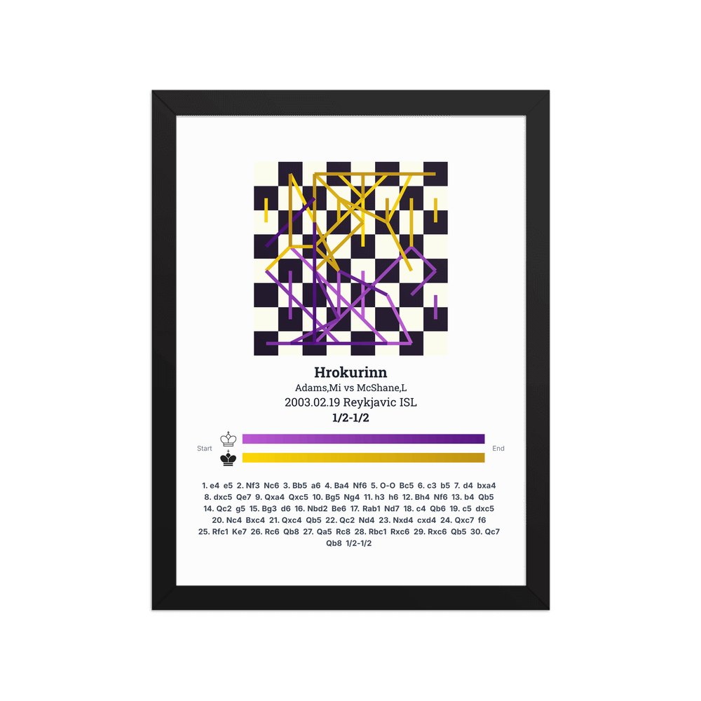 Museum-quality poster on thick, durable matte paper. A sharp, clean look for any chess visualisation.