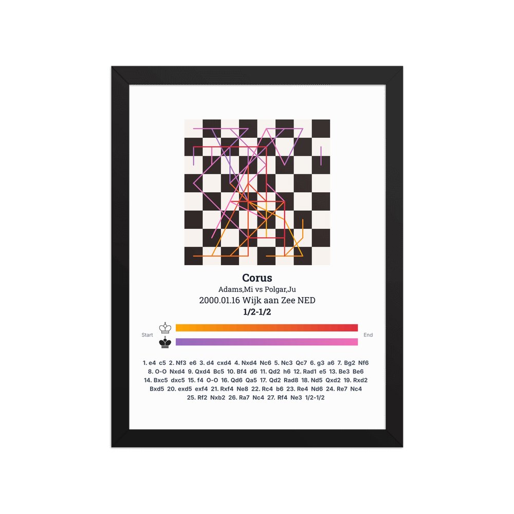 Museum-quality poster on thick, durable matte paper. A sharp, clean look for any chess visualisation.