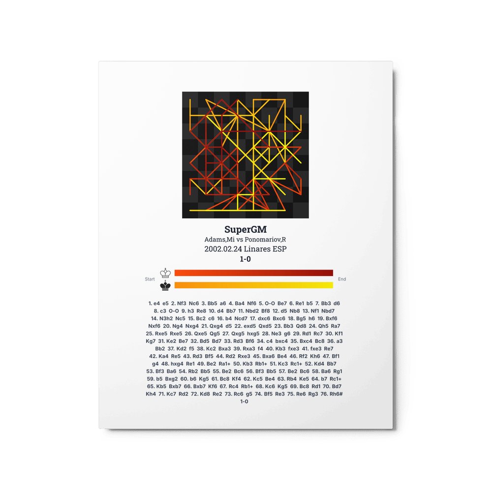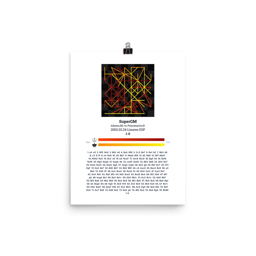 Museum-quality poster on thick, durable matte paper. A sharp, clean look for any chess visualisation.
