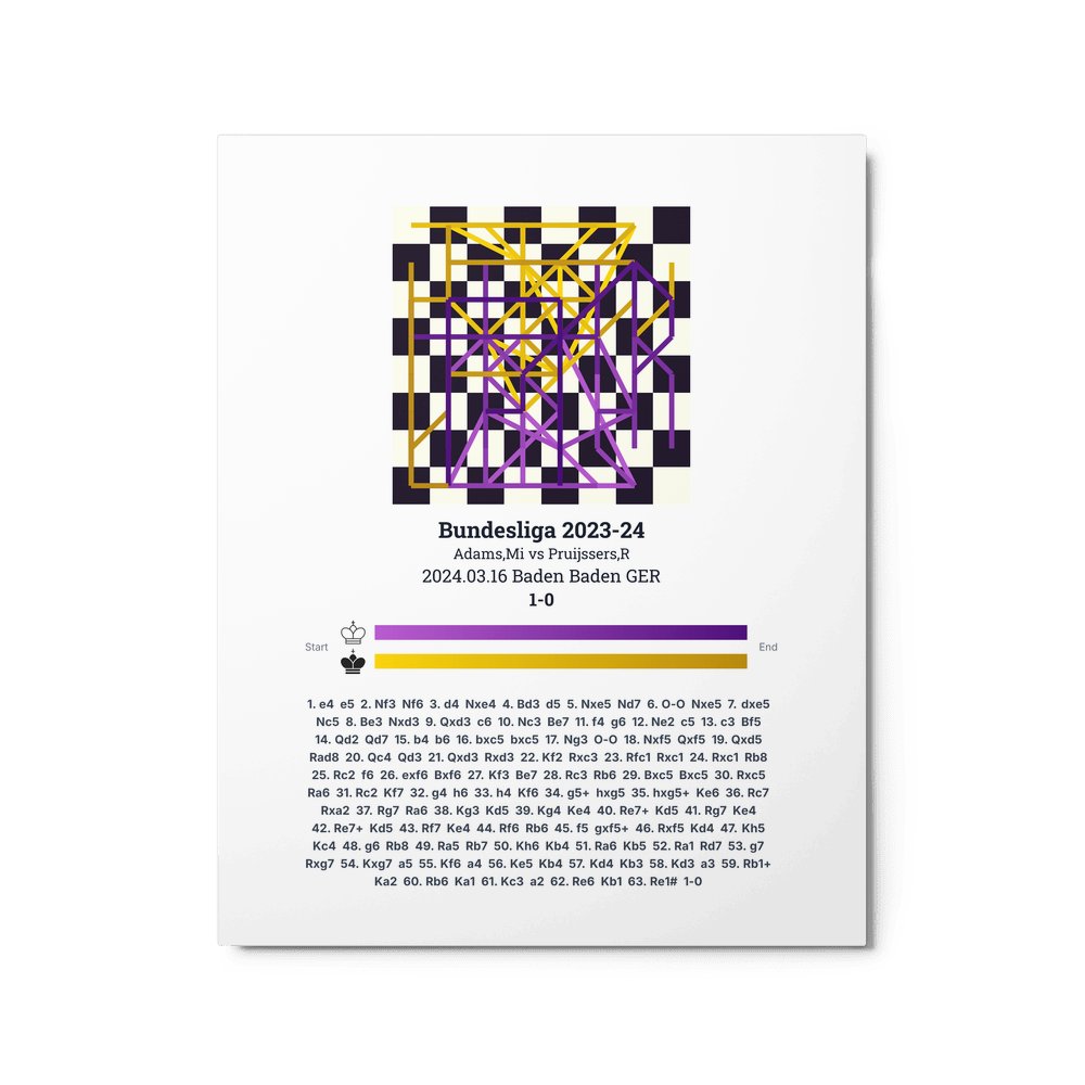 Museum-quality poster on thick, durable matte paper. A sharp, clean look for any chess visualisation.
