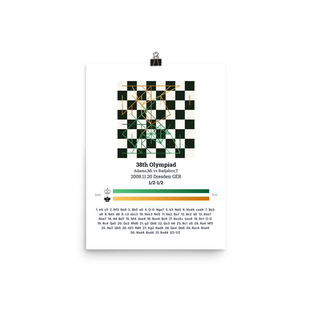 Museum-quality poster on thick, durable matte paper. A sharp, clean look for any chess visualisation.