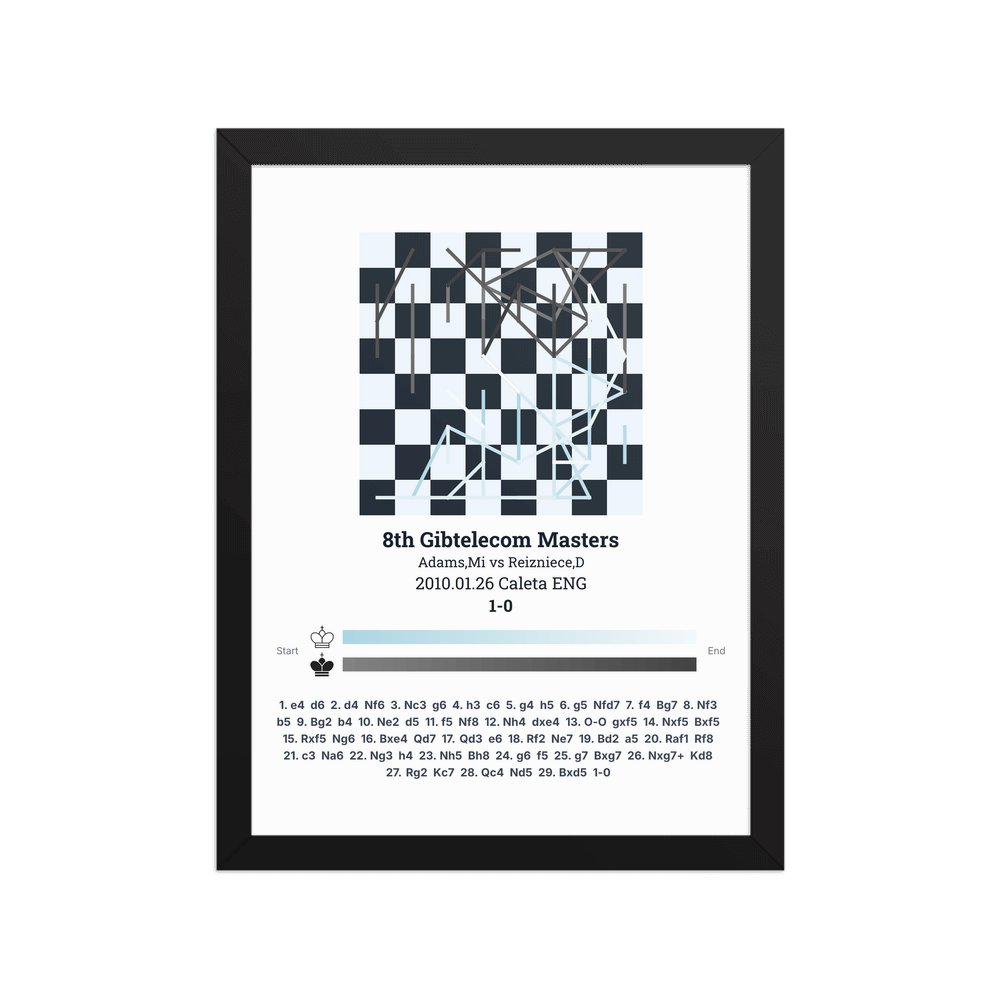 Museum-quality poster on thick, durable matte paper. A sharp, clean look for any chess visualisation.