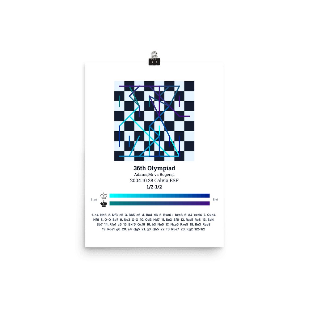 Museum-quality poster on thick, durable matte paper. A sharp, clean look for any chess visualisation.