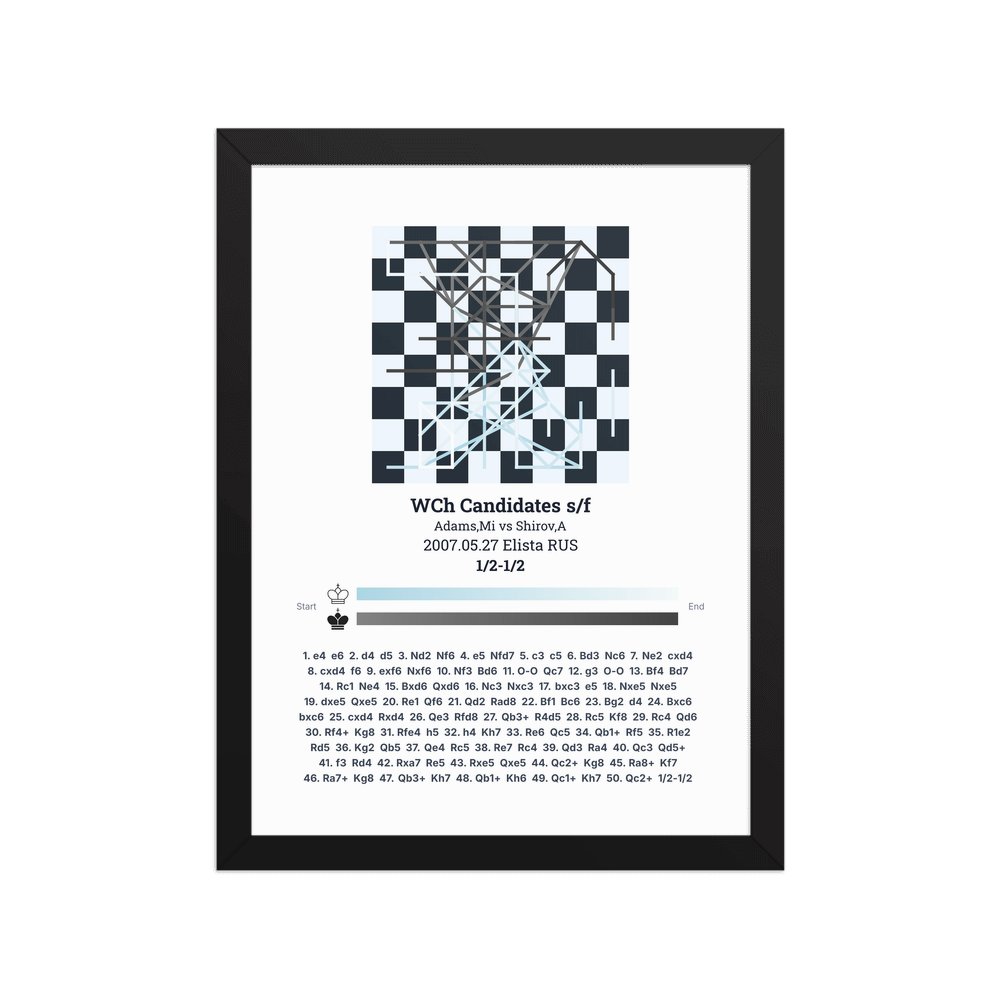 Museum-quality poster on thick, durable matte paper. A sharp, clean look for any chess visualisation.