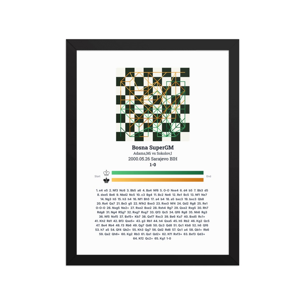 Museum-quality poster on thick, durable matte paper. A sharp, clean look for any chess visualisation.