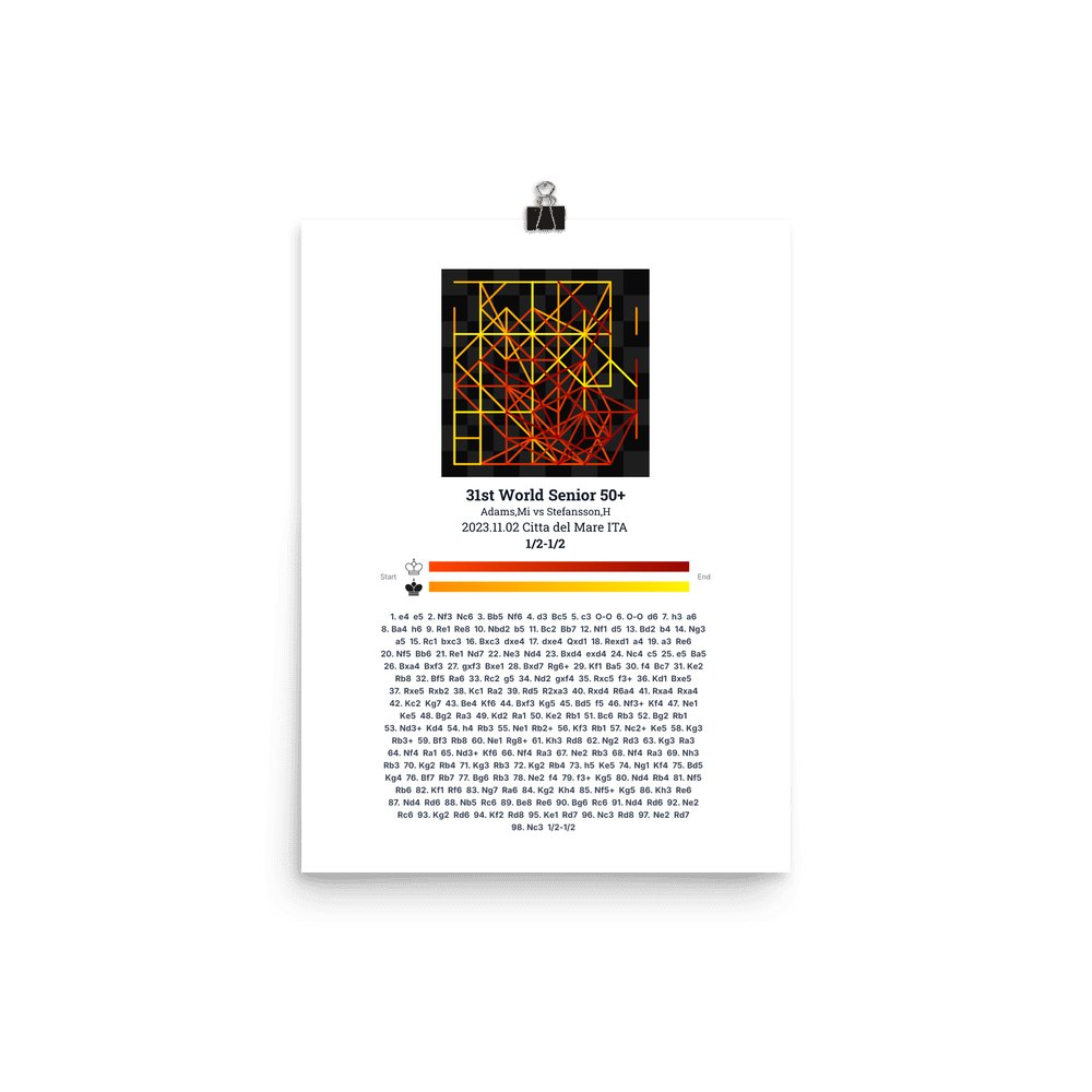 Museum-quality poster on thick, durable matte paper. A sharp, clean look for any chess visualisation.