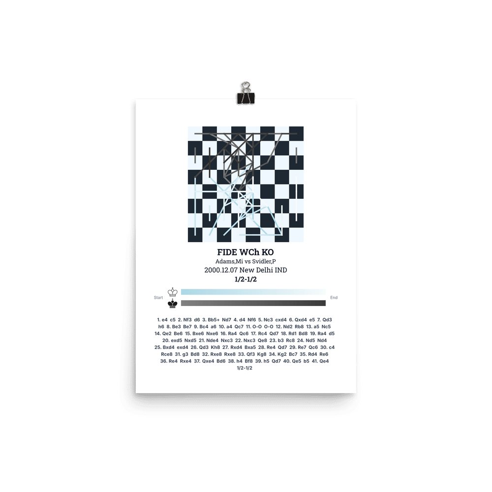 Museum-quality poster on thick, durable matte paper. A sharp, clean look for any chess visualisation.