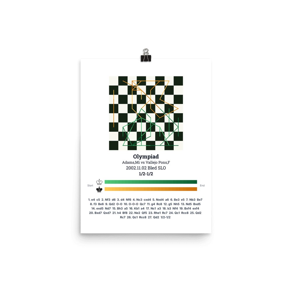 Museum-quality poster on thick, durable matte paper. A sharp, clean look for any chess visualisation.