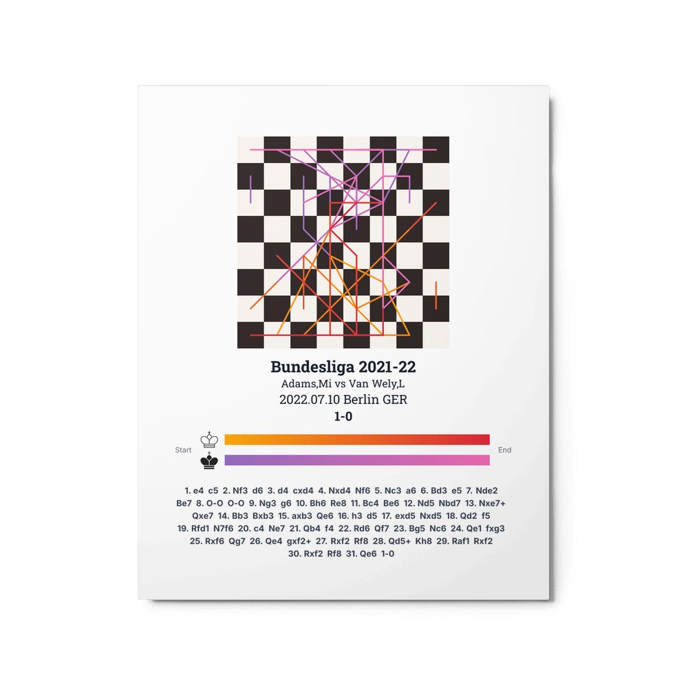 Museum-quality poster on thick, durable matte paper. A sharp, clean look for any chess visualisation.