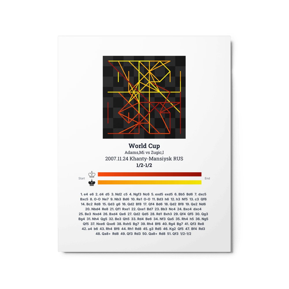 Museum-quality poster on thick, durable matte paper. A sharp, clean look for any chess visualisation.