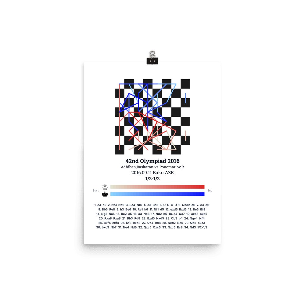 Museum-quality poster on thick, durable matte paper. A sharp, clean look for any chess visualisation.
