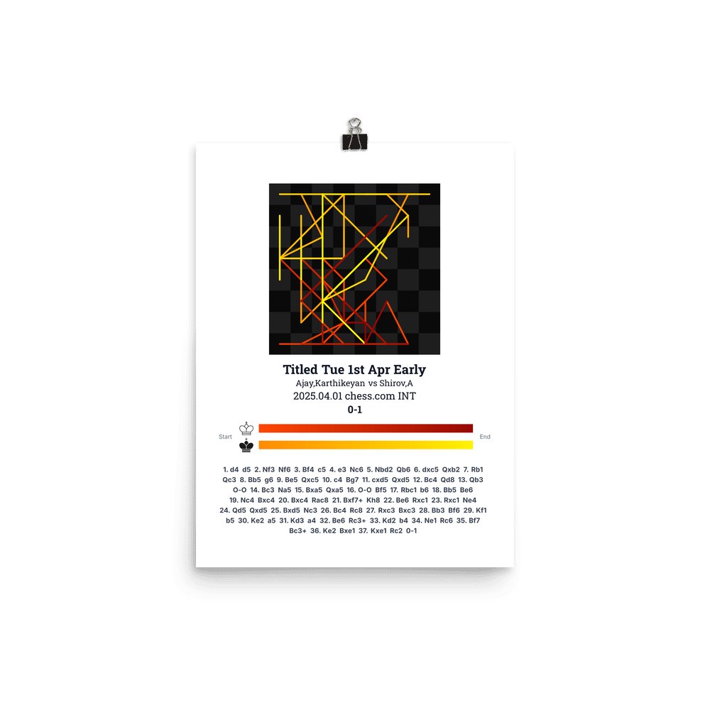 Museum-quality poster on thick, durable matte paper. A sharp, clean look for any chess visualisation.