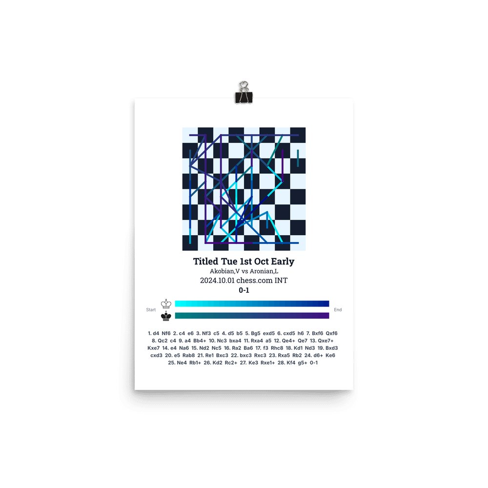 Museum-quality poster on thick, durable matte paper. A sharp, clean look for any chess visualisation.