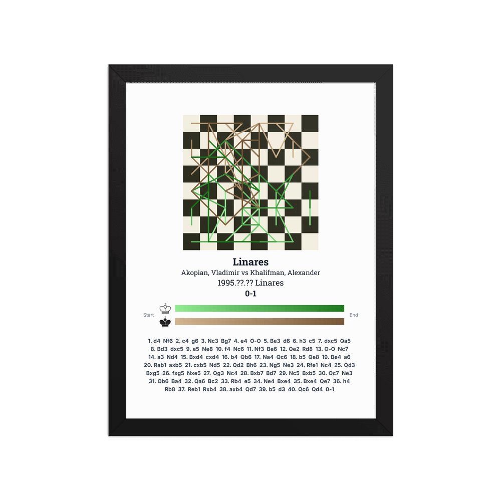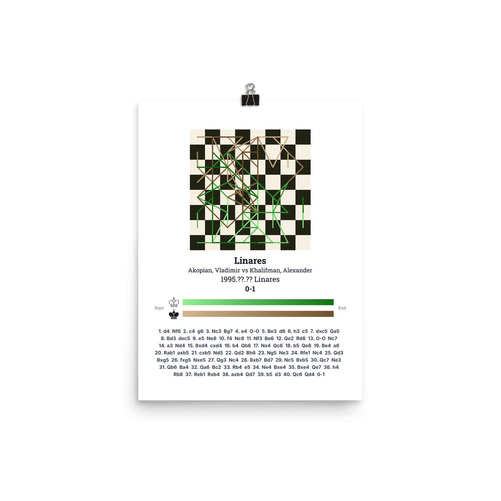 Museum-quality poster on thick, durable matte paper. A sharp, clean look for any chess visualisation.