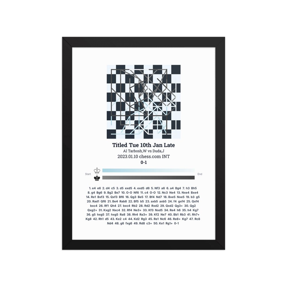 Museum-quality poster on thick, durable matte paper. A sharp, clean look for any chess visualisation.