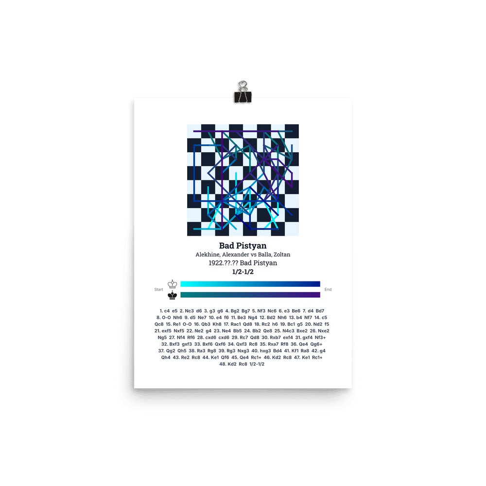 Museum-quality poster on thick, durable matte paper. A sharp, clean look for any chess visualisation.