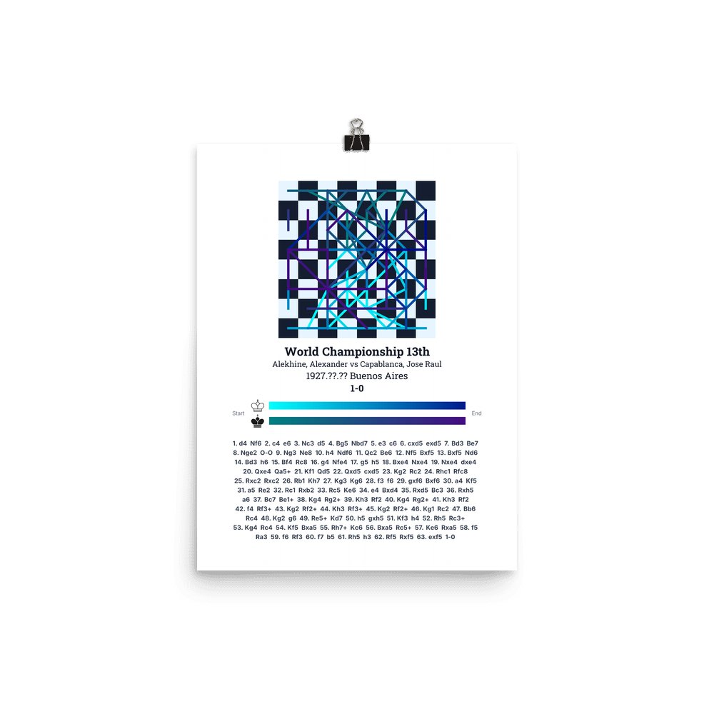 Museum-quality poster on thick, durable matte paper. A sharp, clean look for any chess visualisation.