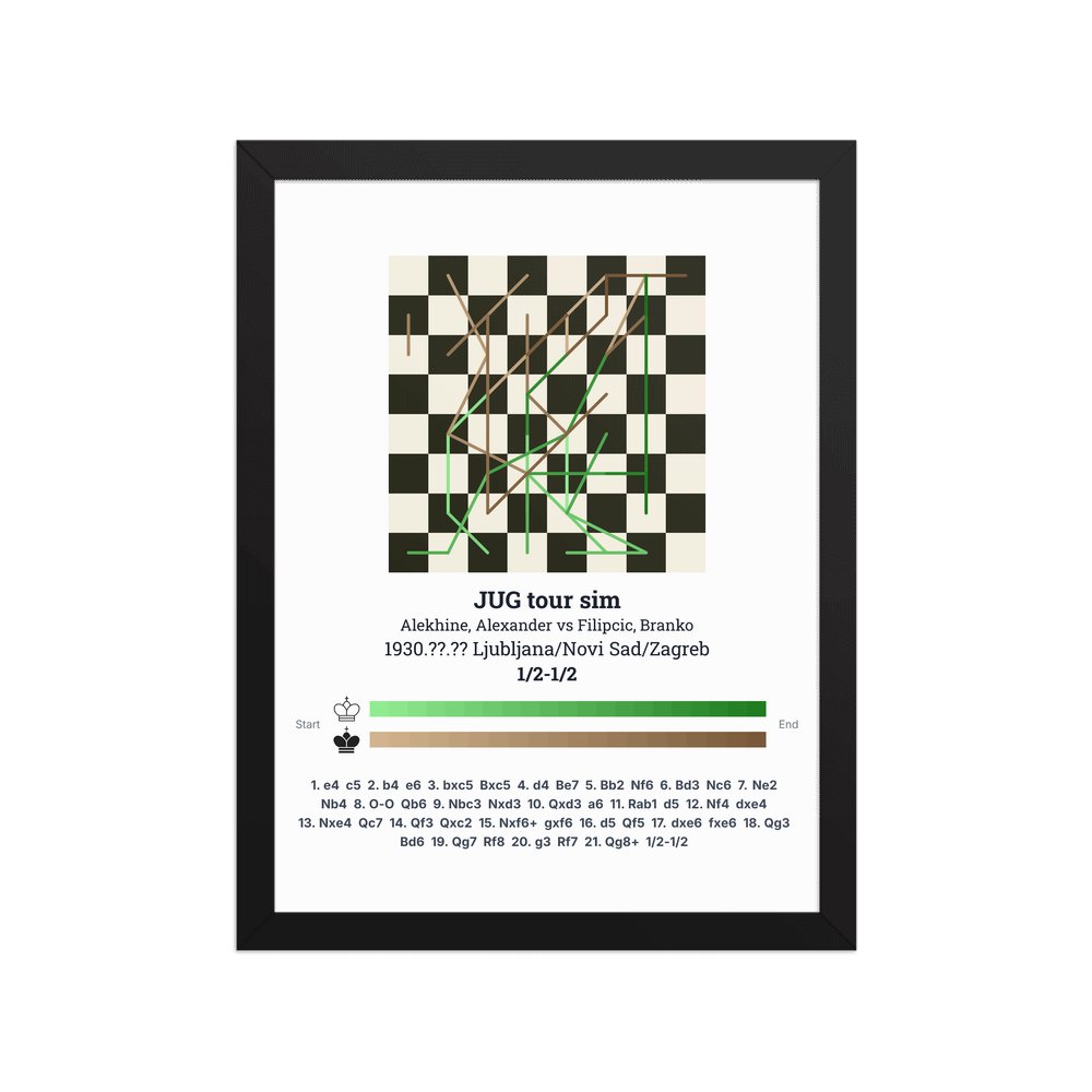 Museum-quality poster on thick, durable matte paper. A sharp, clean look for any chess visualisation.