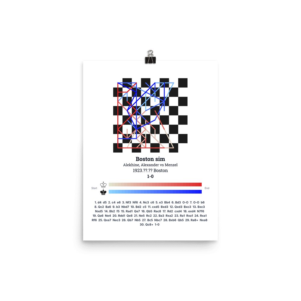 Museum-quality poster on thick, durable matte paper. A sharp, clean look for any chess visualisation.