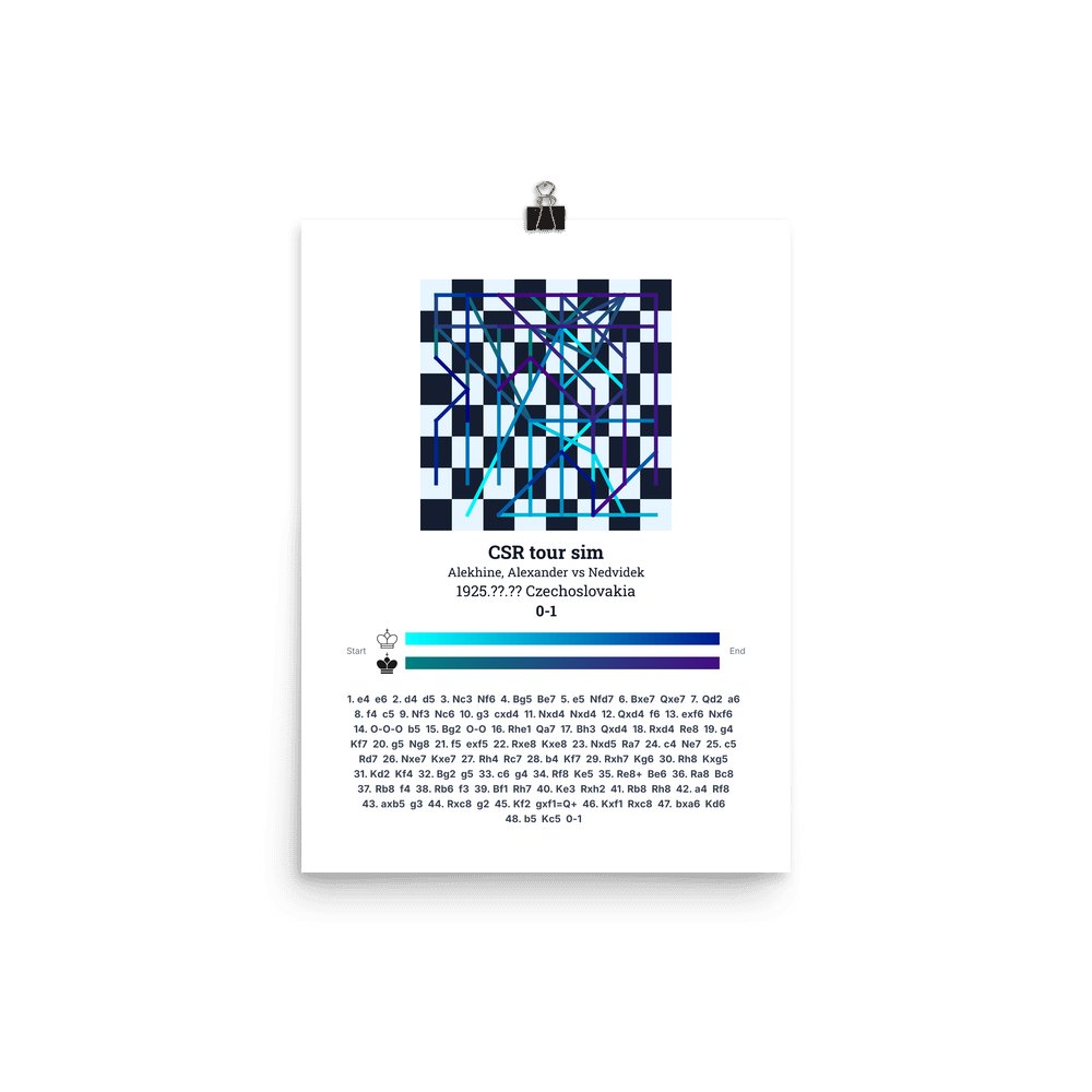 Museum-quality poster on thick, durable matte paper. A sharp, clean look for any chess visualisation.
