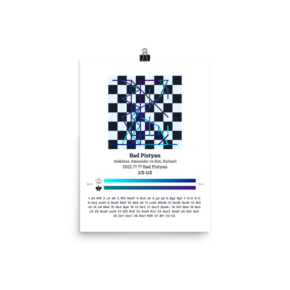 Museum-quality poster on thick, durable matte paper. A sharp, clean look for any chess visualisation.