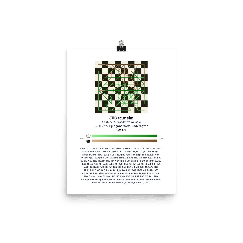 Museum-quality poster on thick, durable matte paper. A sharp, clean look for any chess visualisation.