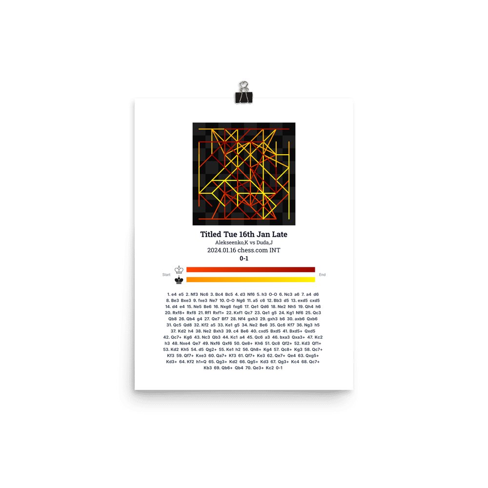 Museum-quality poster on thick, durable matte paper. A sharp, clean look for any chess visualisation.