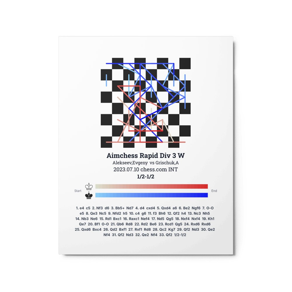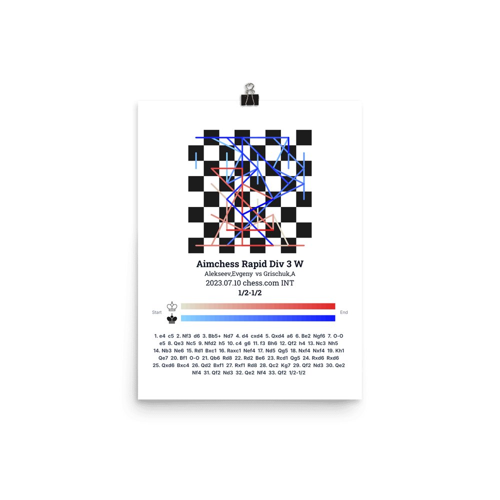 Museum-quality poster on thick, durable matte paper. A sharp, clean look for any chess visualisation.