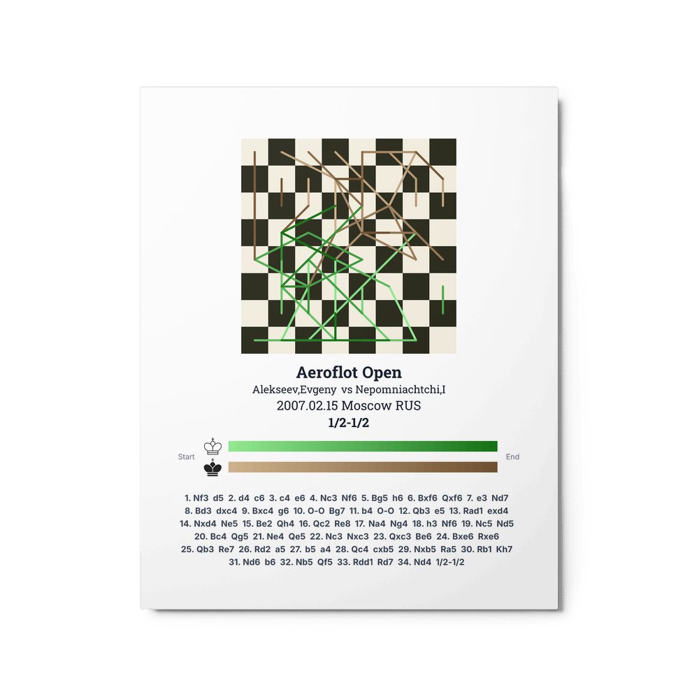 Museum-quality poster on thick, durable matte paper. A sharp, clean look for any chess visualisation.
