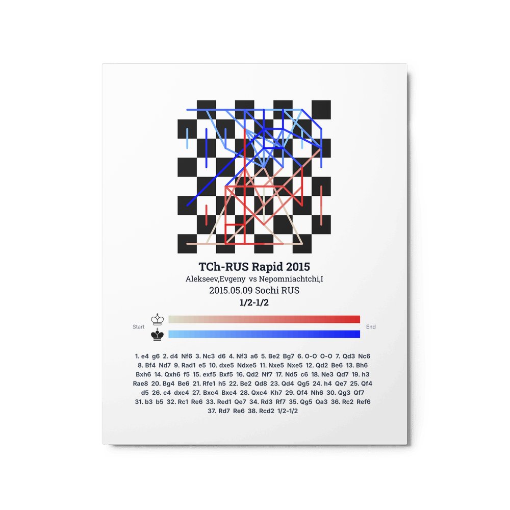 Museum-quality poster on thick, durable matte paper. A sharp, clean look for any chess visualisation.