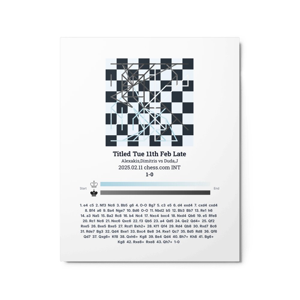 Museum-quality poster on thick, durable matte paper. A sharp, clean look for any chess visualisation.
