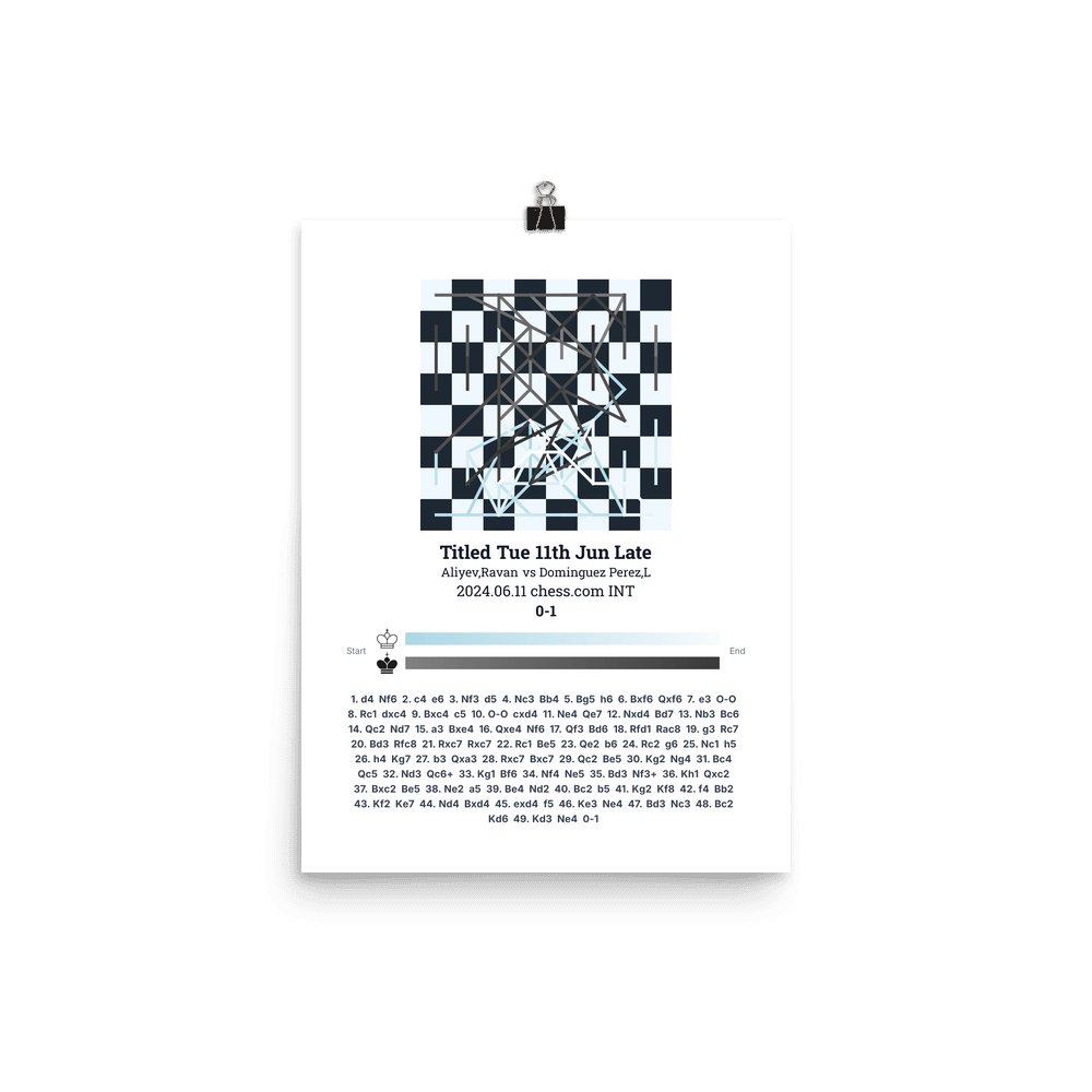 Museum-quality poster on thick, durable matte paper. A sharp, clean look for any chess visualisation.