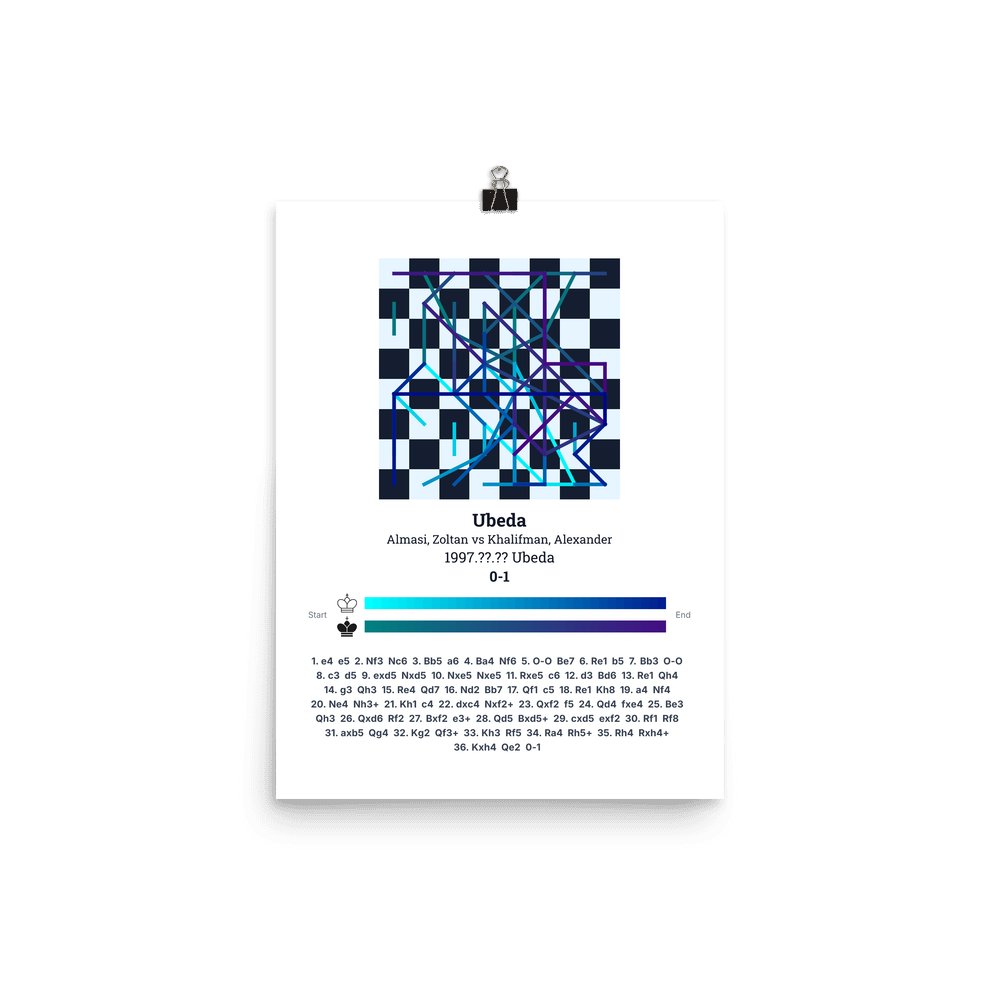 Museum-quality poster on thick, durable matte paper. A sharp, clean look for any chess visualisation.