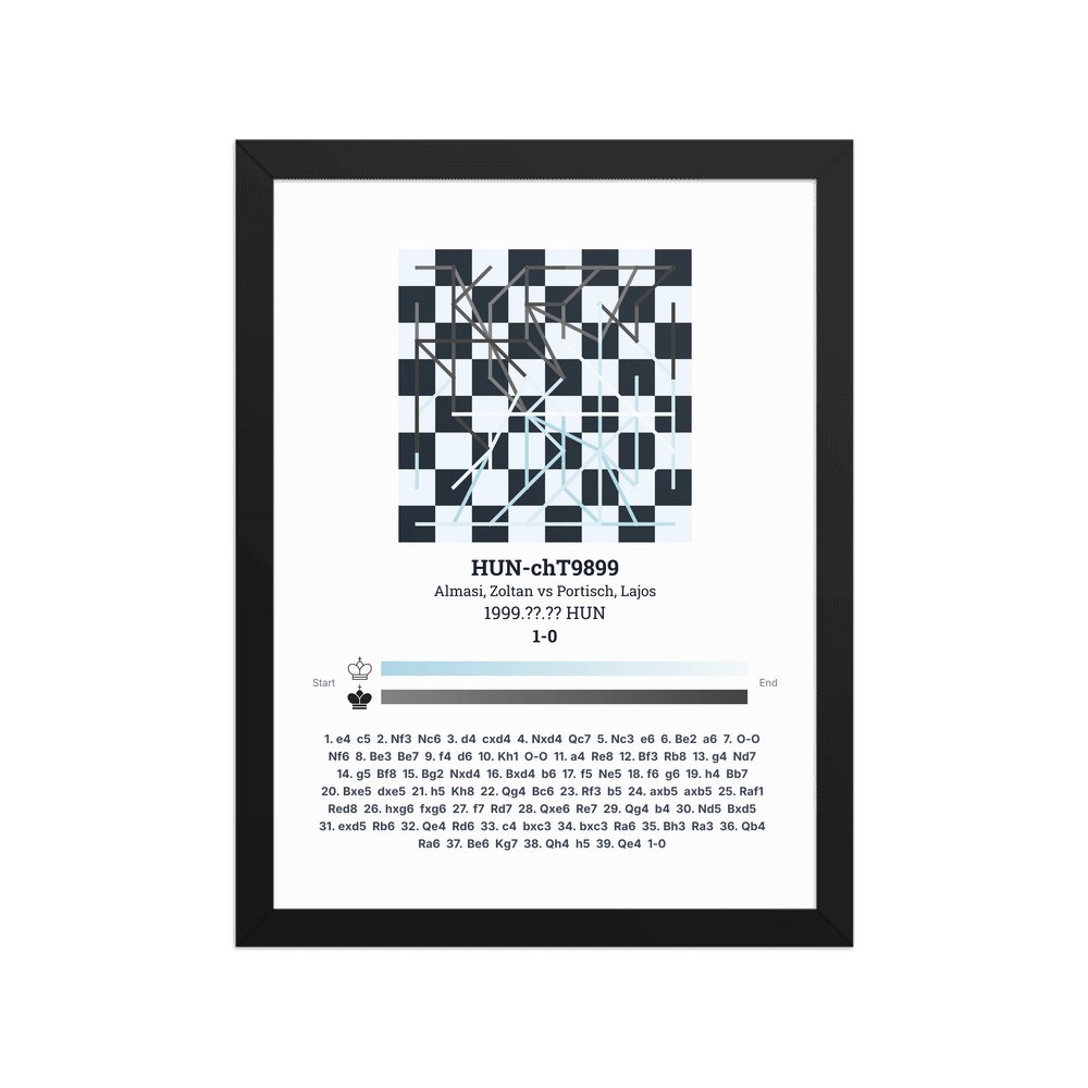 Museum-quality poster on thick, durable matte paper. A sharp, clean look for any chess visualisation.