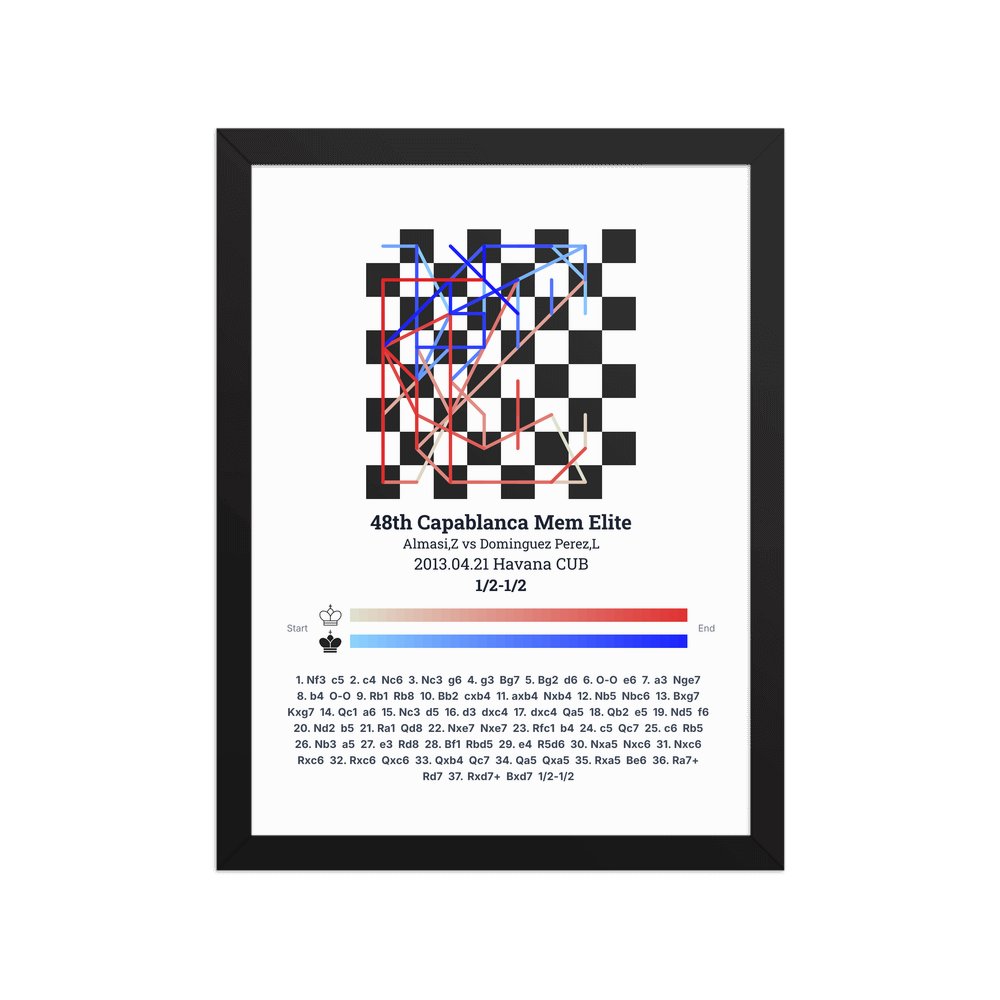 Museum-quality poster on thick, durable matte paper. A sharp, clean look for any chess visualisation.