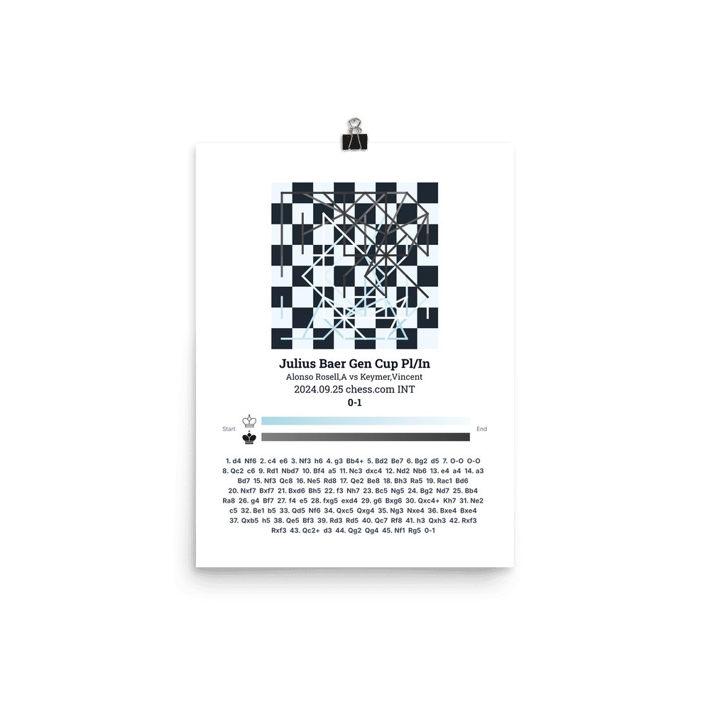 Museum-quality poster on thick, durable matte paper. A sharp, clean look for any chess visualisation.
