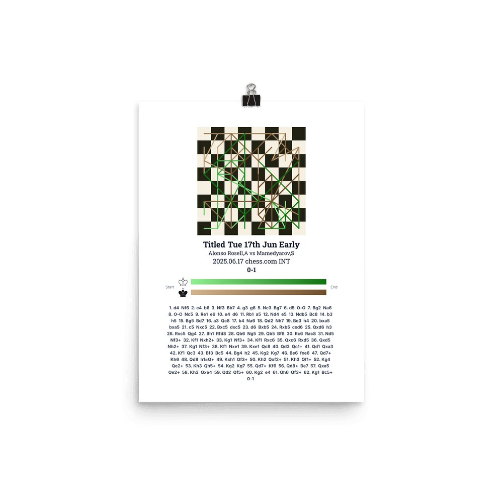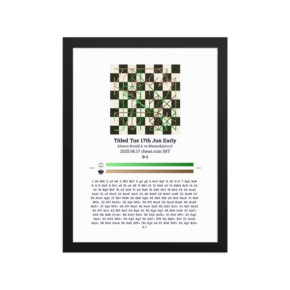 Museum-quality poster on thick, durable matte paper. A sharp, clean look for any chess visualisation.