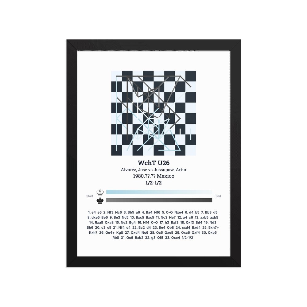 Museum-quality poster on thick, durable matte paper. A sharp, clean look for any chess visualisation.