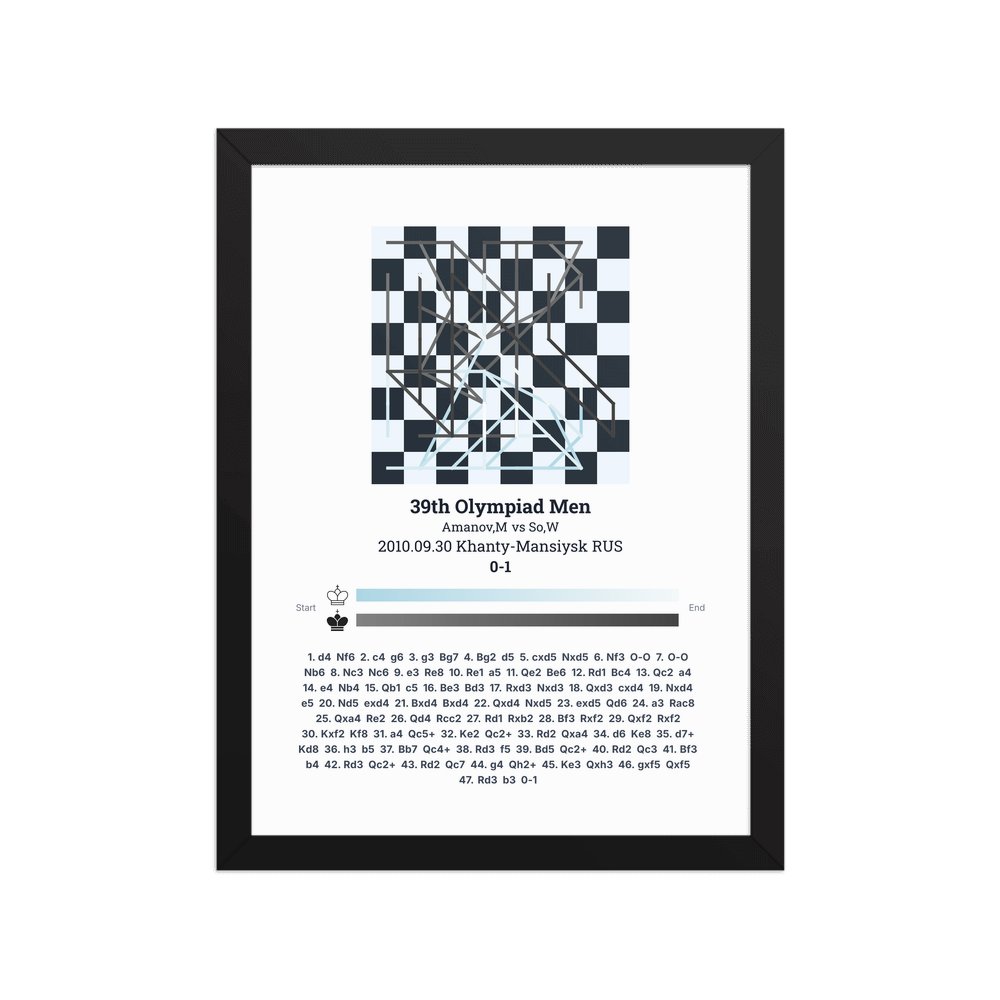 Museum-quality poster on thick, durable matte paper. A sharp, clean look for any chess visualisation.