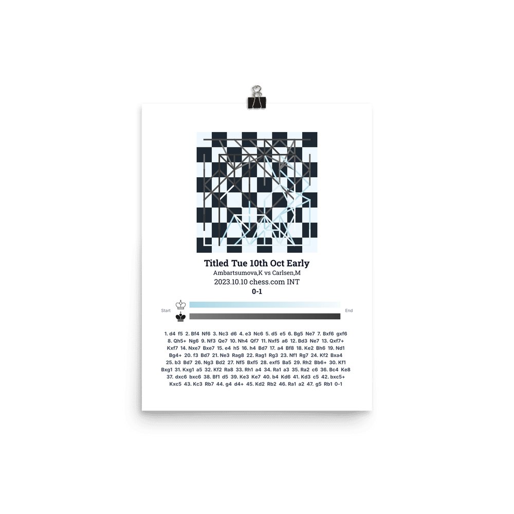 Museum-quality poster on thick, durable matte paper. A sharp, clean look for any chess visualisation.