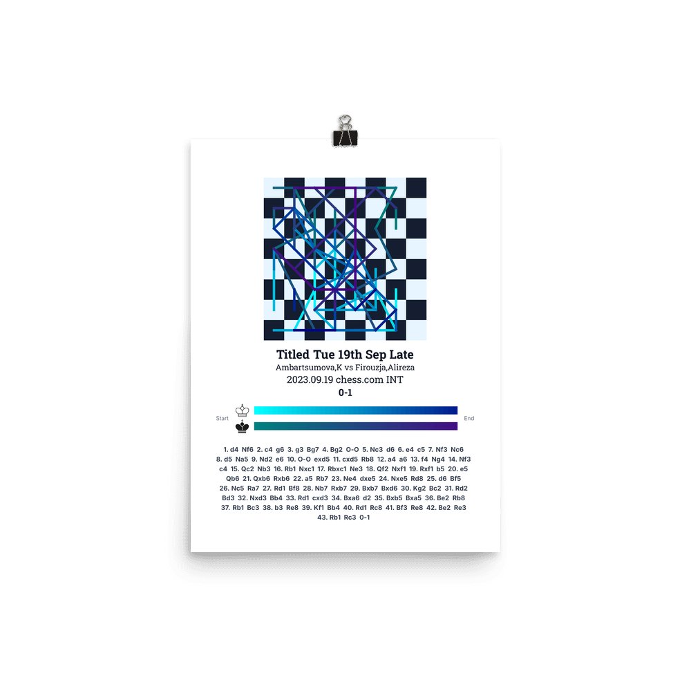 Museum-quality poster on thick, durable matte paper. A sharp, clean look for any chess visualisation.