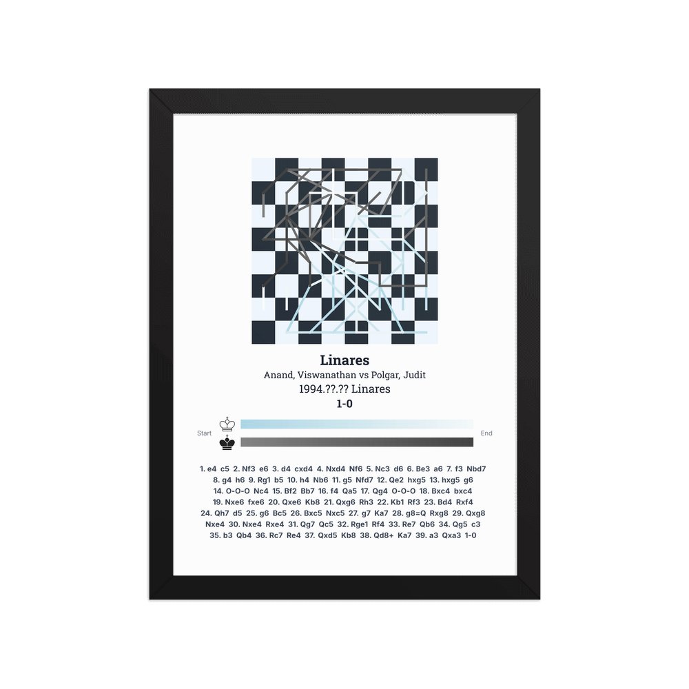 Museum-quality poster on thick, durable matte paper. A sharp, clean look for any chess visualisation.