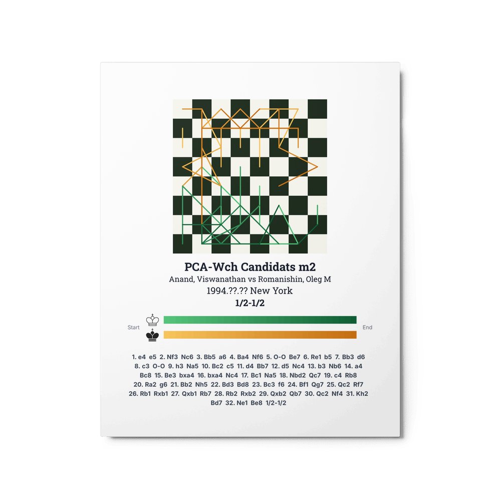Museum-quality poster on thick, durable matte paper. A sharp, clean look for any chess visualisation.