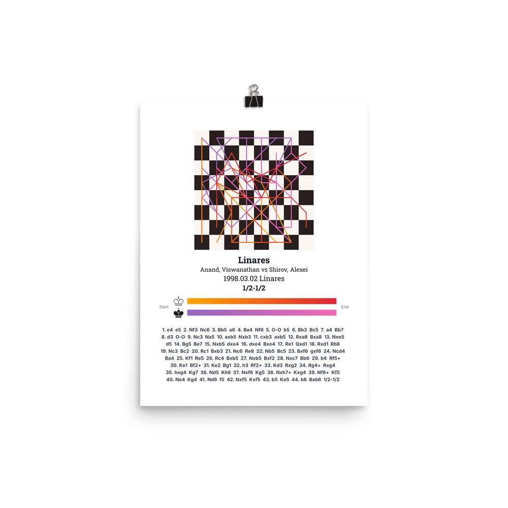 Museum-quality poster on thick, durable matte paper. A sharp, clean look for any chess visualisation.