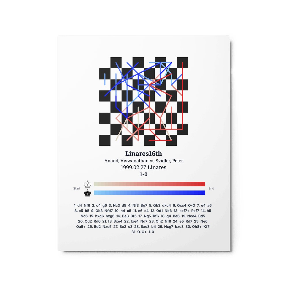 Museum-quality poster on thick, durable matte paper. A sharp, clean look for any chess visualisation.