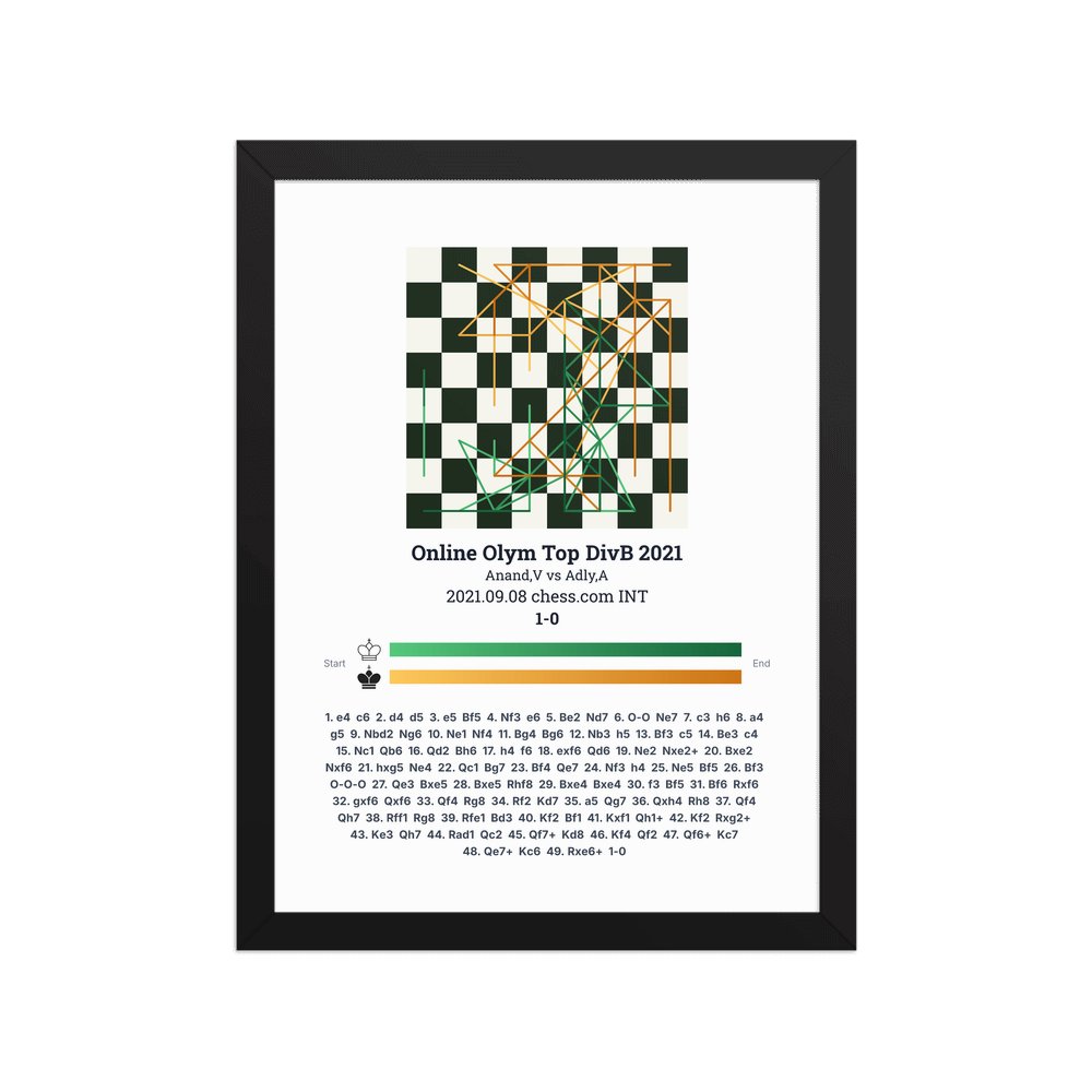 Museum-quality poster on thick, durable matte paper. A sharp, clean look for any chess visualisation.