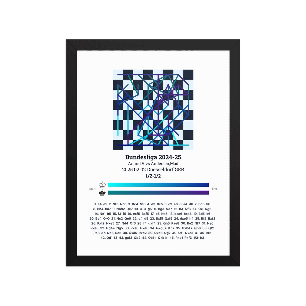 Museum-quality poster on thick, durable matte paper. A sharp, clean look for any chess visualisation.