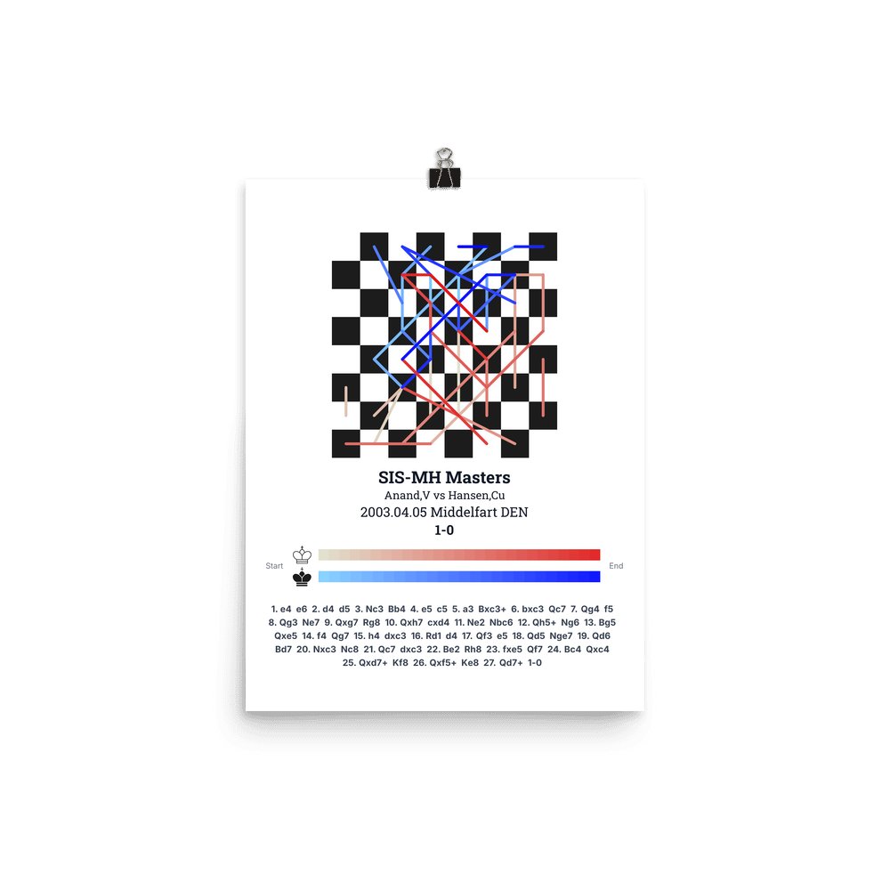 Museum-quality poster on thick, durable matte paper. A sharp, clean look for any chess visualisation.