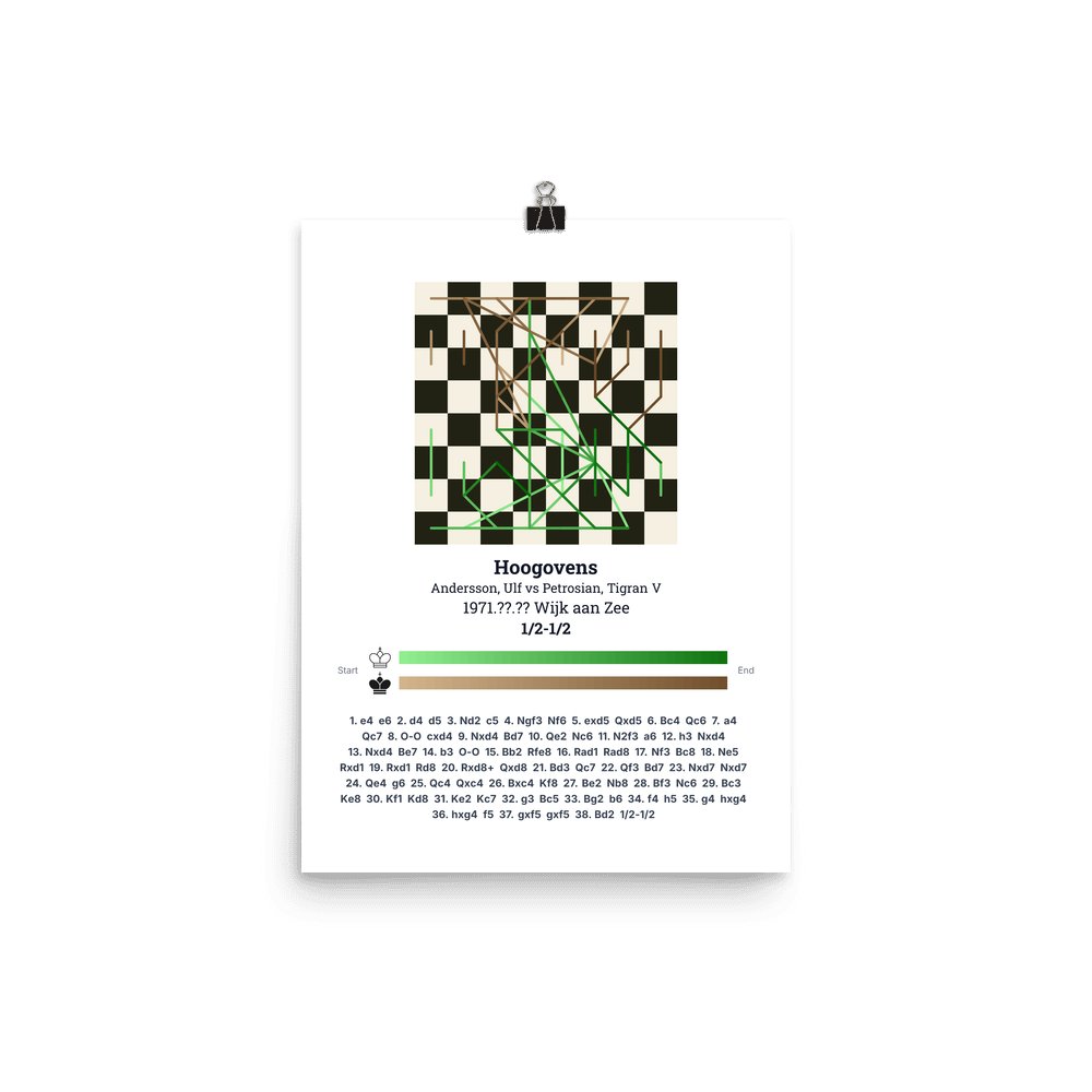 Museum-quality poster on thick, durable matte paper. A sharp, clean look for any chess visualisation.